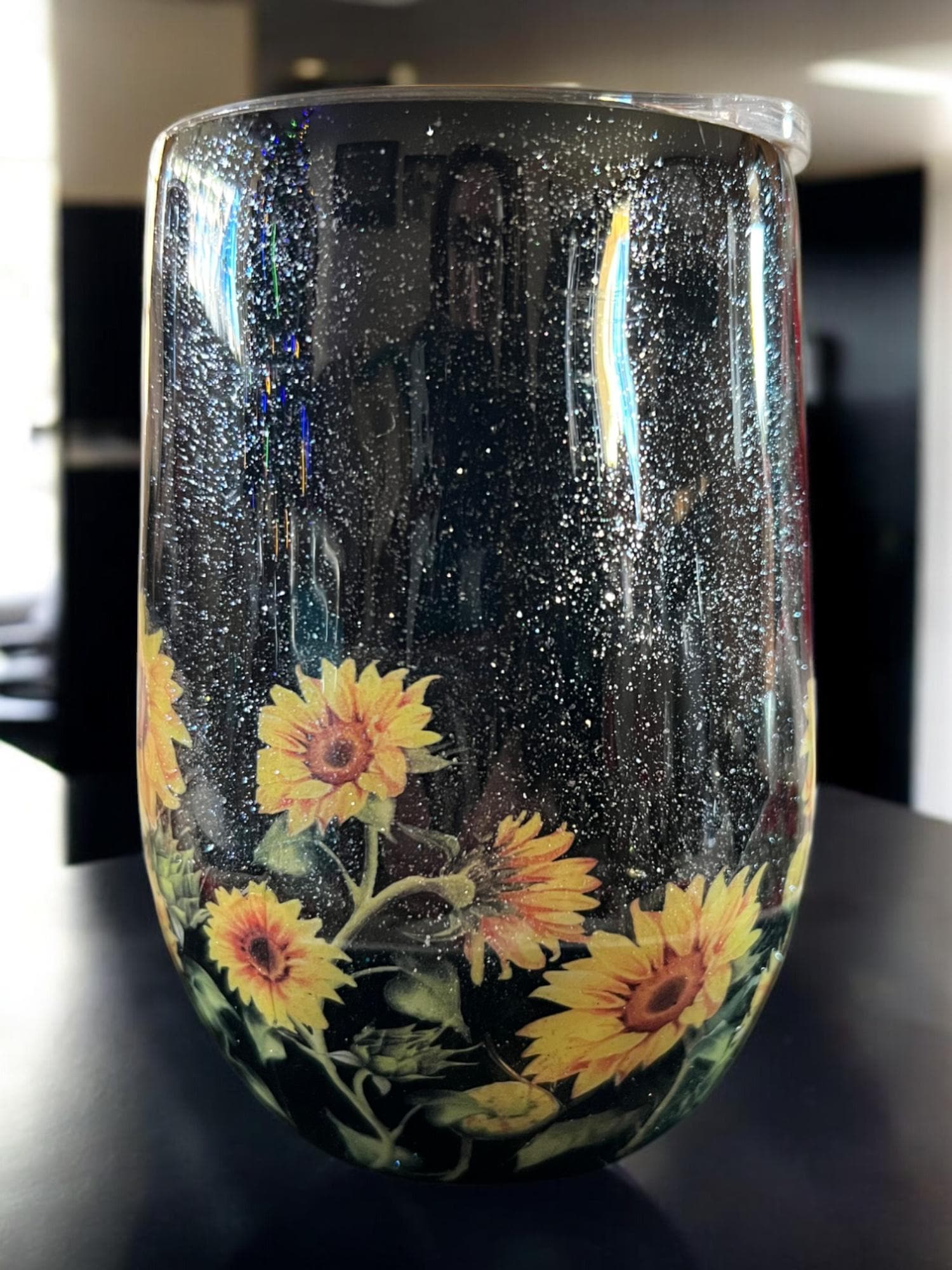 Black and Sunflower stainless steel wine glass with lid