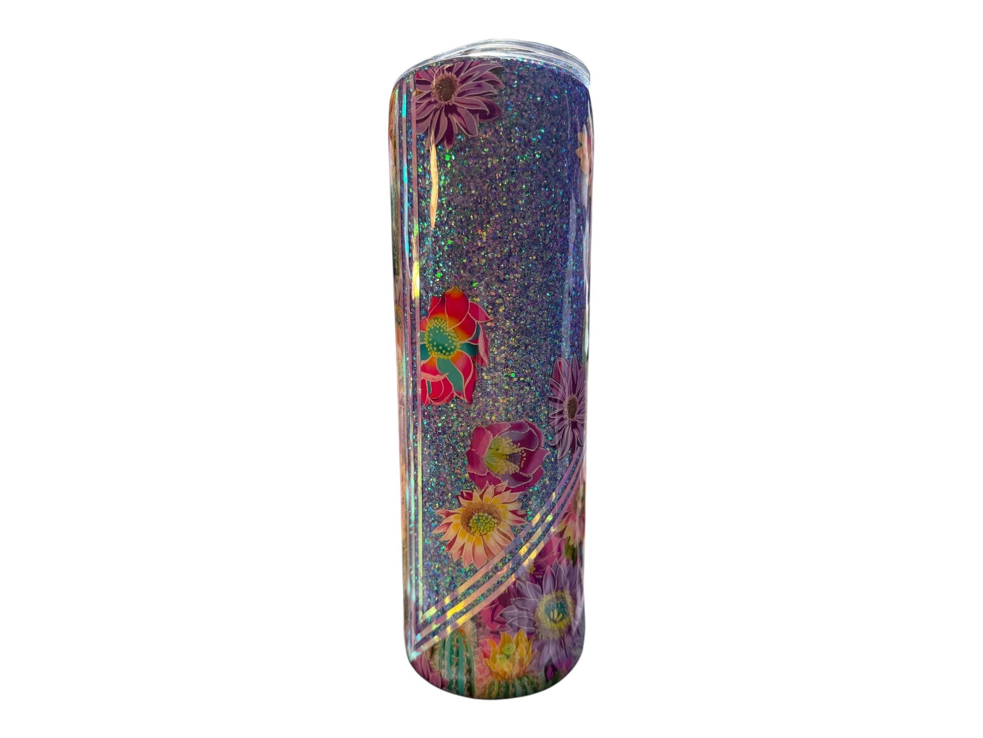 Brighten up your day with this stunning 30 oz tumbler featuring a vibrant mix of colorful flowers and cactus succulents on a dazzling sparkly purple background! Whether you’re sipping iced coffee on a sunny day or keeping your tea warm through a busy morning, this double-walled tumbler keeps drinks cold all day and hot for hours.